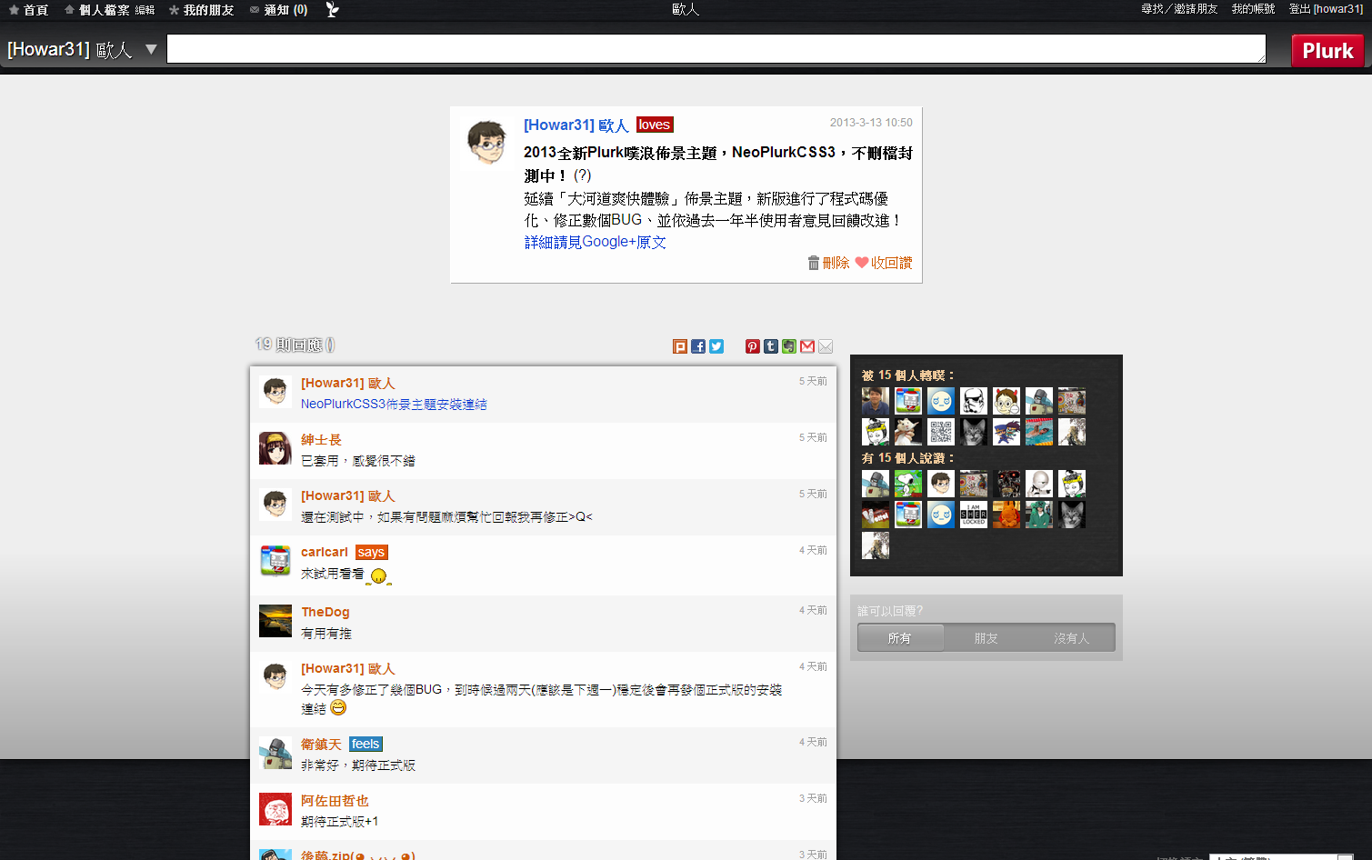 全新改版!噗浪佈景主題 NeoPlurkCSS3 翻新上架!