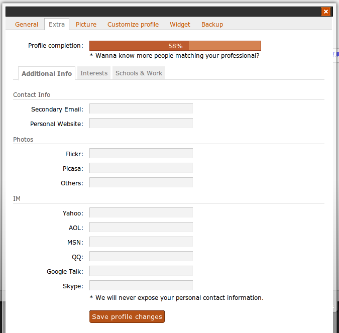 這個不管是本人、朋友、訪客登入都差不多,朋友的話會出現傳送私噗的按鈕,而有些人個人自介會打很多,或是有噗浪官方認證圖示,所以下方預留空間
