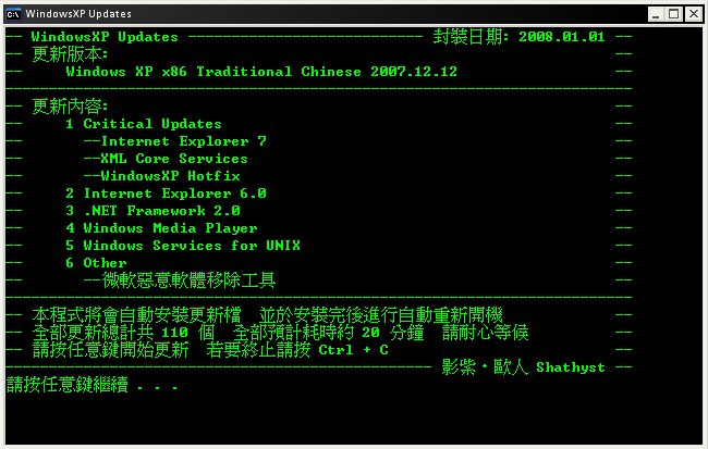 然後點擊WindowsXP_Update_20071212.exe.bat就可以囉!^^